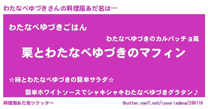 | 意味不明あだ名 | 『めかぶ科わたなべゆづき属』 |