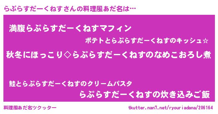 | ヘコむあだ名 | 『らぷらすだーくねす(震え声)』『らぷっぺ』 |