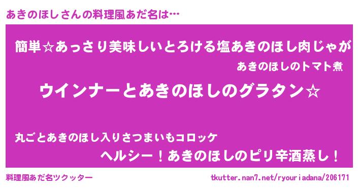 | ヘコむあだ名 | 『豆乳』『あきのほし(笑)』 |