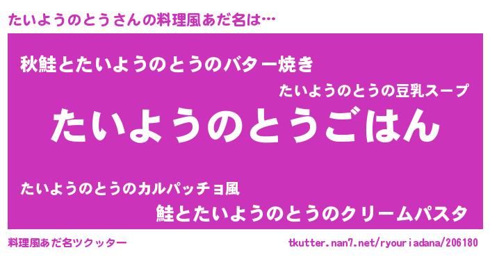 | 胡散臭い通販商品みたいなあだ名 | 『絶対に幸福をもたらす健康食品…その名も「たいようのとう」』 |