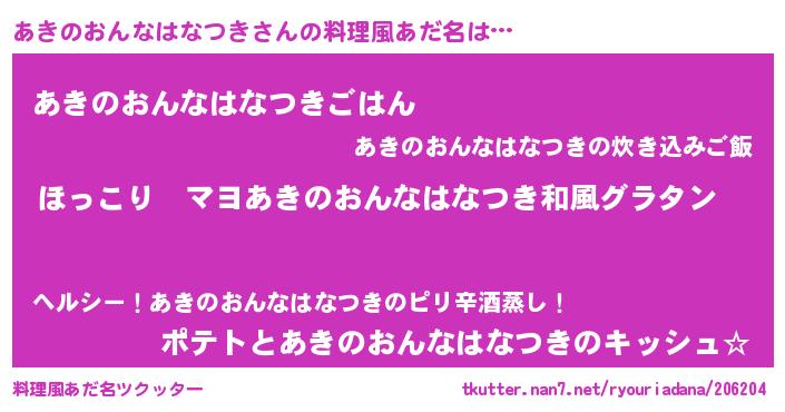 | 胡散臭い通販商品みたいなあだ名 | 『あなたにだけ特別に提供する限定10本のレアな日本酒…その名も「あきのおんなはなつき」』 |