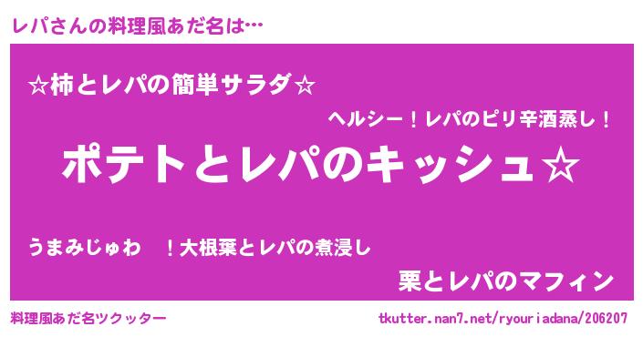 | ヘコむあだ名 | 『レパっぺ』『牛乳』『レパにゅー』 |