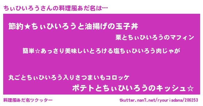 | ヘコむあだ名 | 『ちぃひいろう(爆)』『ちぃっふぃ~』 |