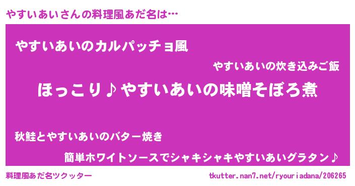 | 女子向けラノベタイトル風あだ名 | 『(仮)やすいあいのやんごとなき事情』 |