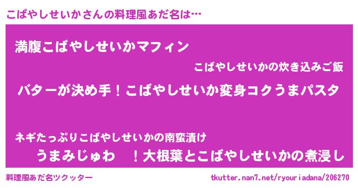 | 女子向けラノベタイトル風あだ名 | 『こばやしせいか恋絵巻』 |