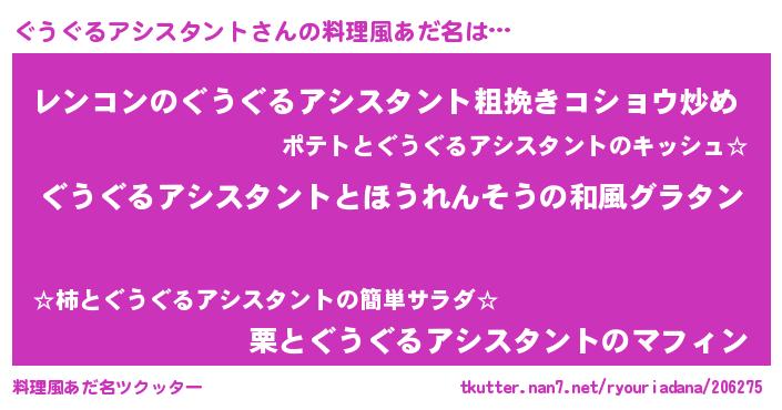 男性向けラノベタイトル風あだ名 | 『ぐうぐるアシスタント~年齢イコール彼女いない歴の魔法使い~』 |
