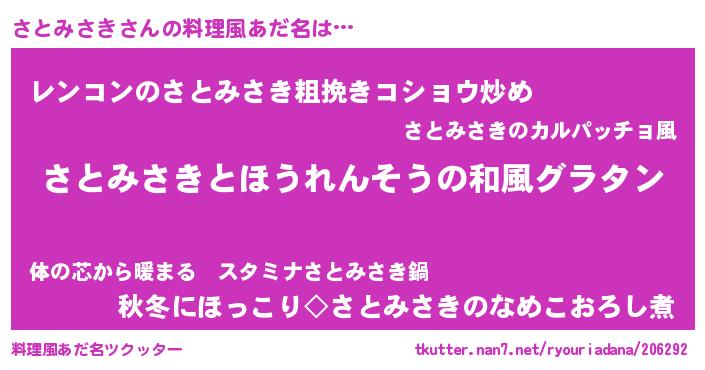| 男性向けラノベタイトル風あだ名 | 『さとみさき~年齢イコール彼女いない歴の魔法使い~』 |