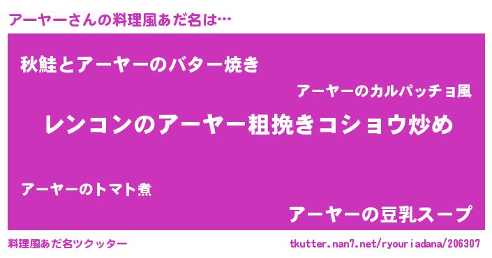 | 意味不明あだ名 | 『自称アーヤー』『永久保存アーヤー』 |