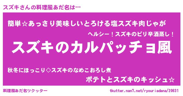 | 女子向けラノベタイトル風あだ名 | 『スズキが死なない童話 林檎のスズキの診療簿』 |