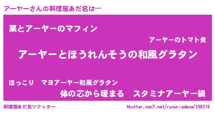| 胡散臭い通販商品みたいなあだ名 | 『運命の人と巡り会える高級そうな絵画…その名も「アーヤー」』 |