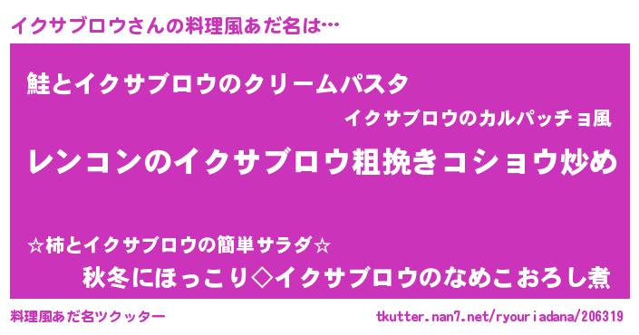 | 意味不明あだ名 | 『自称イクサブロウ』 |