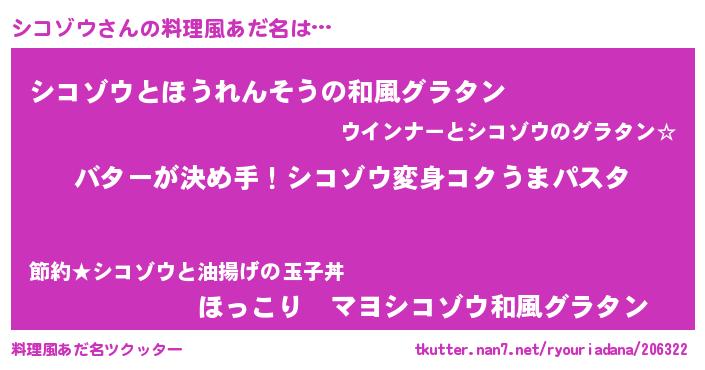 | 女子向けラノベタイトル風あだ名 | 『シコゾウ恋絵巻』『シコゾウ伯爵の花嫁』 |