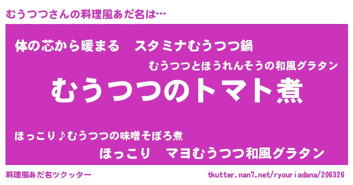 ポケモン風あだ名 | 『ムックウザ』『ムウツダネ』 |