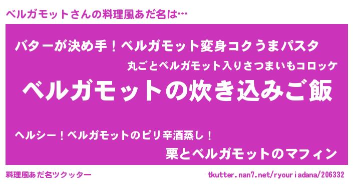 男性向けラノベタイトル風あだ名 | 『うちのベルガモットが世界を掌握している!』 |