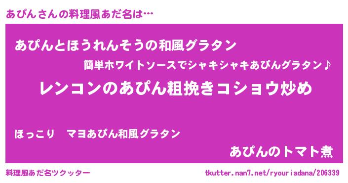 | 意味不明あだ名 | 『自称あぴん』『なめこ科あぴん属』 |