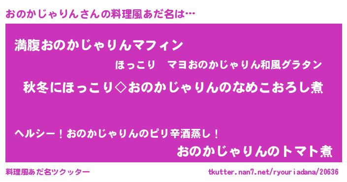 | 男性向けラノベタイトル風あだ名 | 『おのかじゃりんに滅ぼされるだけの簡単なお仕事です』 |