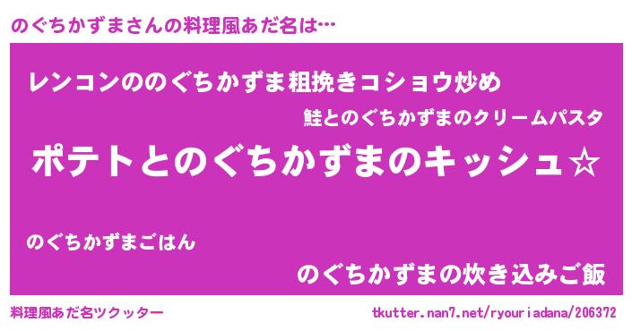 女子向けラノベタイトル風あだ名 | 『のぐちかずまの卵を拾いまして』 |