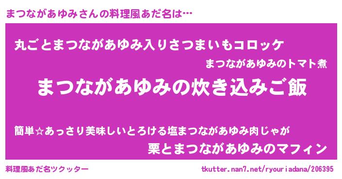 ヘコむあだ名 | 『まつながあゆみ(苦笑)』『豆乳』 |