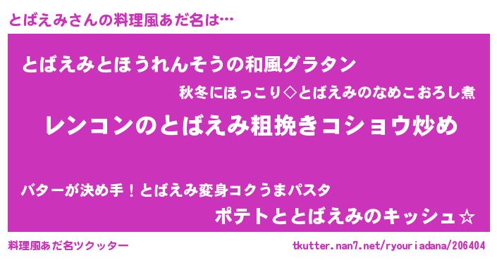 意味不明あだ名 | 『自称とばえみ』『もやし科とばえみ属』 |