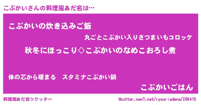 | 男性向けラノベタイトル風あだ名 | 『こぶかいに滅ぼされるだけの簡単なお仕事です』 |