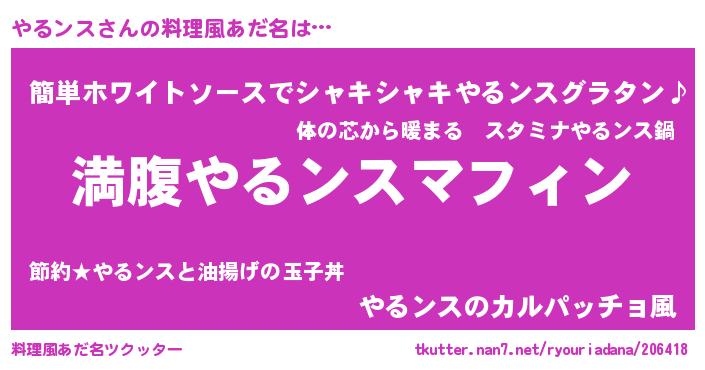 | ヘコむあだ名 | 『やるンス(苦笑)』『やるを』『牛乳』 |