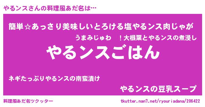 | 胡散臭い通販商品みたいなあだ名 | 『来世でも幸せになれる水素水…その名も「やるンス」』 |