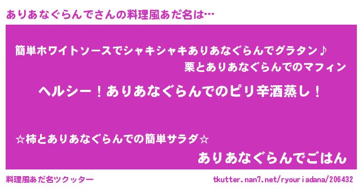 | 意味不明あだ名 | 『自称ありあなぐらんで』 |