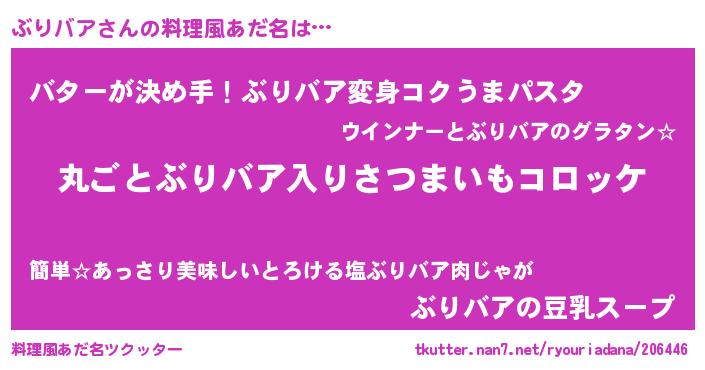 | 胡散臭い通販商品みたいなあだ名 | 『世界中を虜にした100年もののヴィンテージワイン…その名も「ぶりバア」』 |
