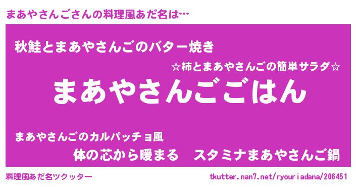 | ヘコむあだ名 | 『まあやさんご(笑)』『なまこ酢』 |