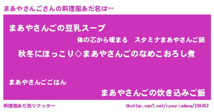 | 意味不明あだ名 | 『とにかく怪しいまあやさんご』 |