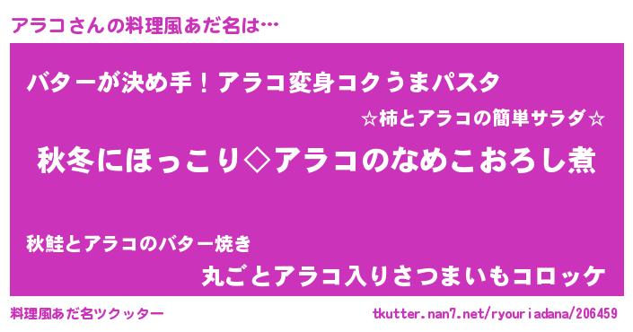 | ヘコむあだ名 | 『アラコ(苦笑)』『豆乳』『アラにー』 |