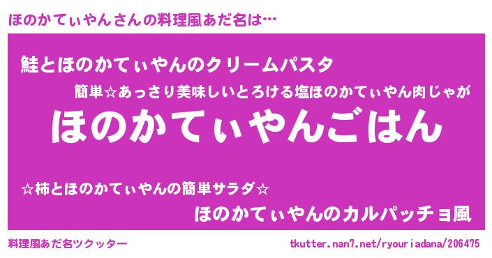 | 男性向けラノベタイトル風あだ名 | 『転生したらほのかてぃやんだった件』 |