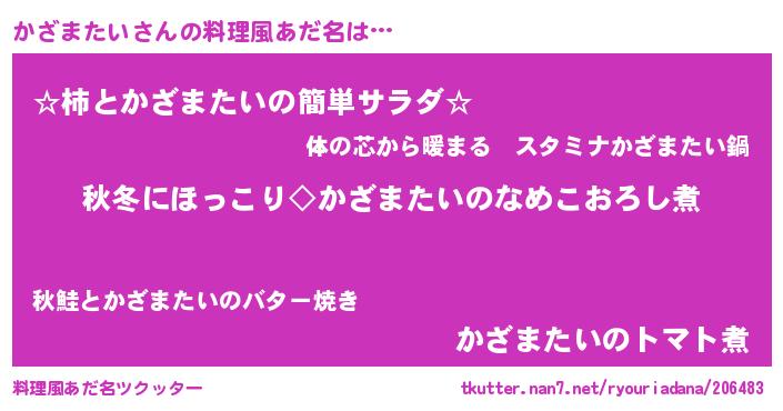 | 男性向けラノベタイトル風あだ名 | 『かざまたいに滅ぼされるだけの簡単なお仕事です』 |