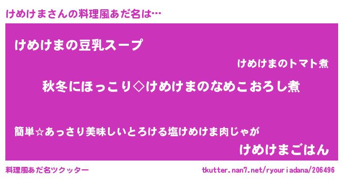 | ポケモン風あだ名 | 『ケメゴンZ』『ヒケメケマ』 |