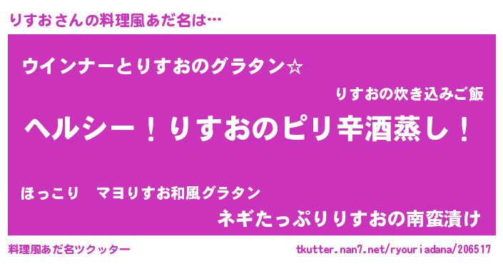 | 男性向けラノベタイトル風あだ名 | 『Re:りすおから始める異世界生活』 |