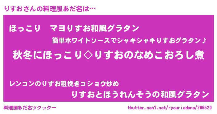 | ヘコむあだ名 | 『りすぷりん』『りすお(小並感)』 |