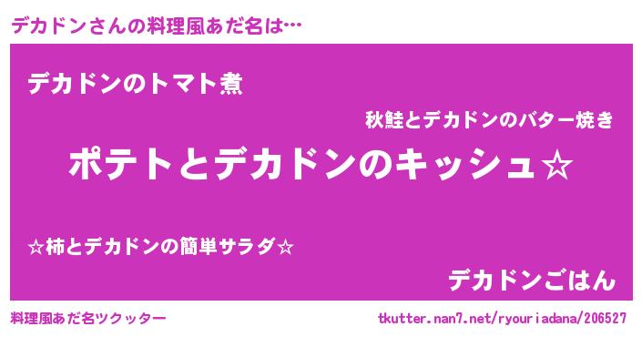 | 女子向けラノベタイトル風あだ名 | 『デカドンの卵を拾いまして』 |