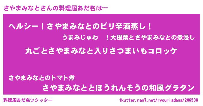 | 恥ずかしいあだ名 | 『サヤマミナトデラックス』『さやっちょ』 |