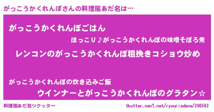 | ヘコむあだ名 | 『つくし』『がっっふぃ~』『がっお』 |
