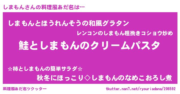 | 女子向けラノベタイトル風あだ名 | 『死神しまもんの再婚』 |
