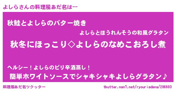 ヘコむあだ名 | 『よしら(苦笑)』『よしぷりん』 |