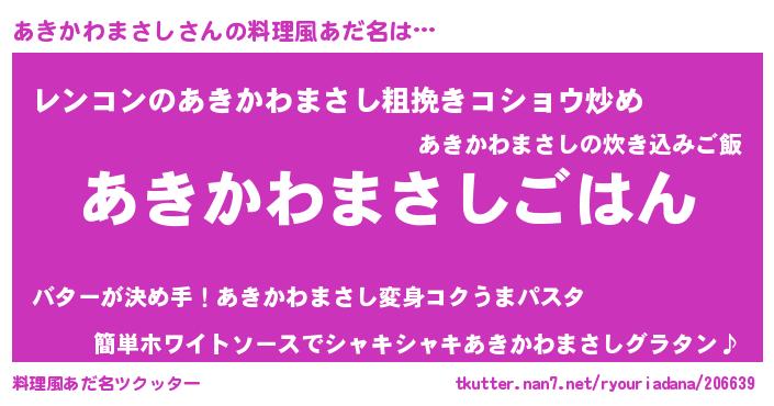 | 肩書あだ名 | 『あきかわまさし大尉』 |
