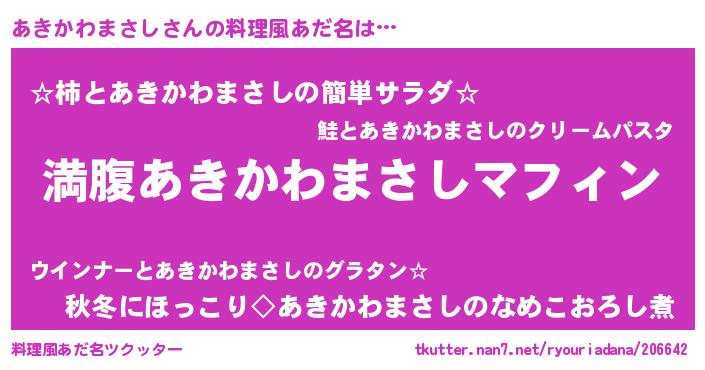 | 男性向けラノベタイトル風あだ名 | 『あきかわまさしという概念が存在しない退屈な世界 』 |