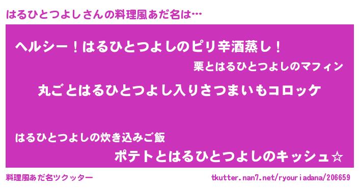 | 男性向けラノベタイトル風あだ名 | 『魔弾の王とはるひとつよし』 |