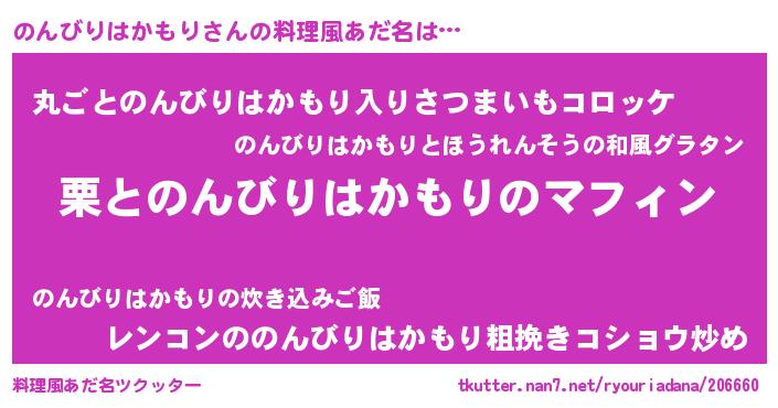 | ヒーロー風カッコイイあだ名 | 『仮面ノンダー』『ネオノンビリハカモリ』 |