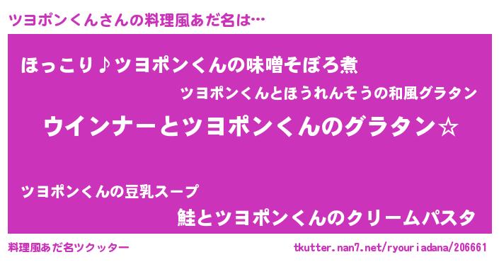 | 胡散臭い通販商品みたいなあだ名 | 『世界が平和になる高級そうな壺…その名も「ツヨポンくん」』 |