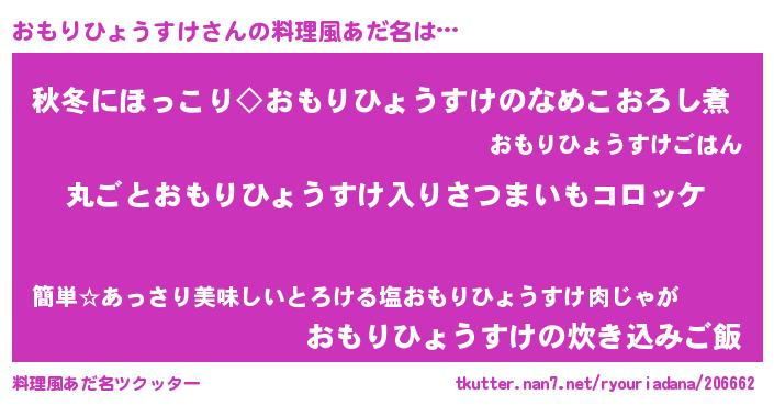 | 意味不明あだ名 | 『住所不定無職おもりひょうすけ(2歳)』 |