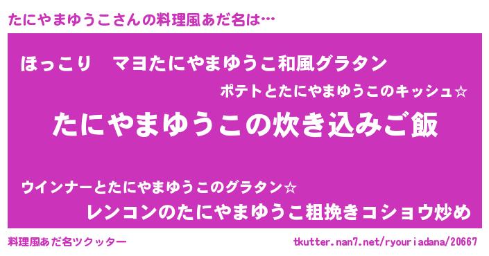 | 男性向けラノベタイトル風あだ名 | 『冴えないたにやまゆうこの育てかた』 |