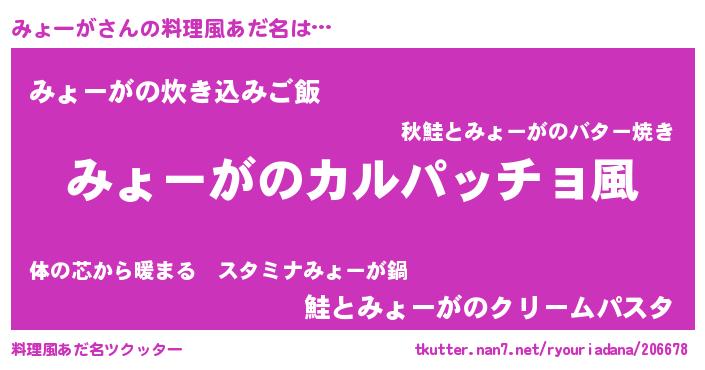 | 意味不明あだ名 | 『住所不定無職みょーが(6歳)』 |