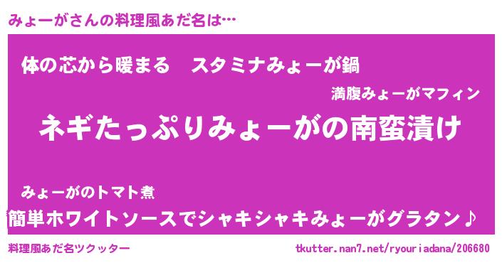 | 意味不明あだ名 | 『ペロリンみょーが』『永久保存みょーが』 |